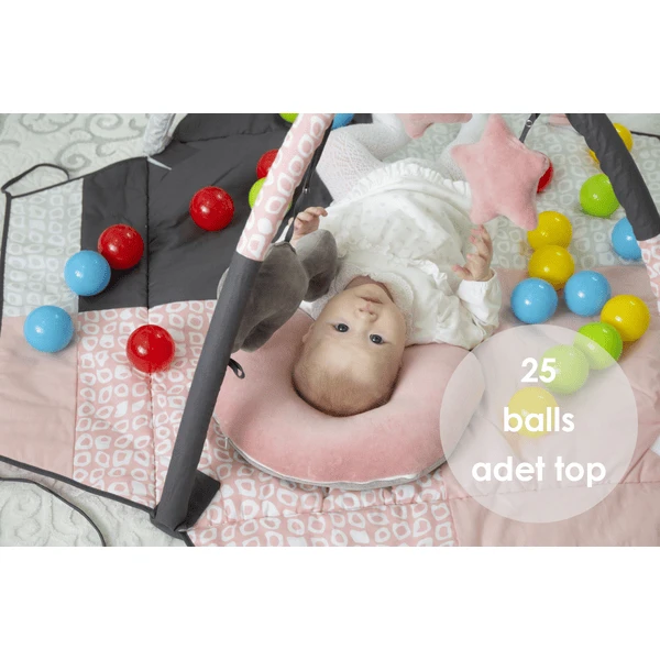 - Het zachte speelkleed met speelboog biedt baby’s vanaf het begin speelplezier, met slechts enkele handbewegingen kan het in een ballenbadje veranderd worden.