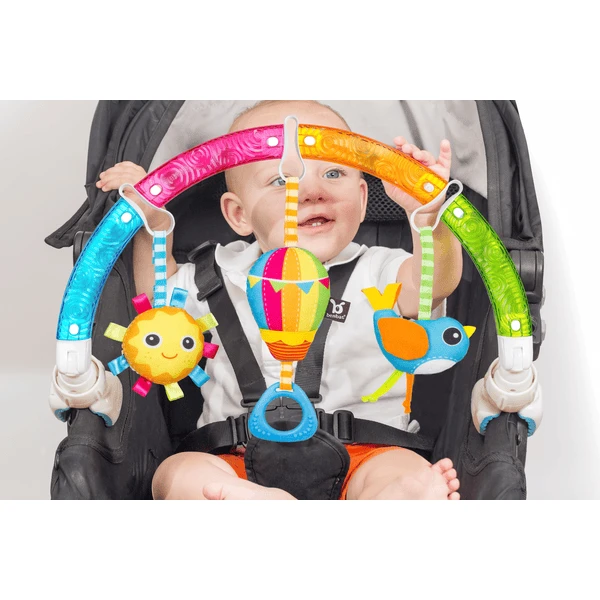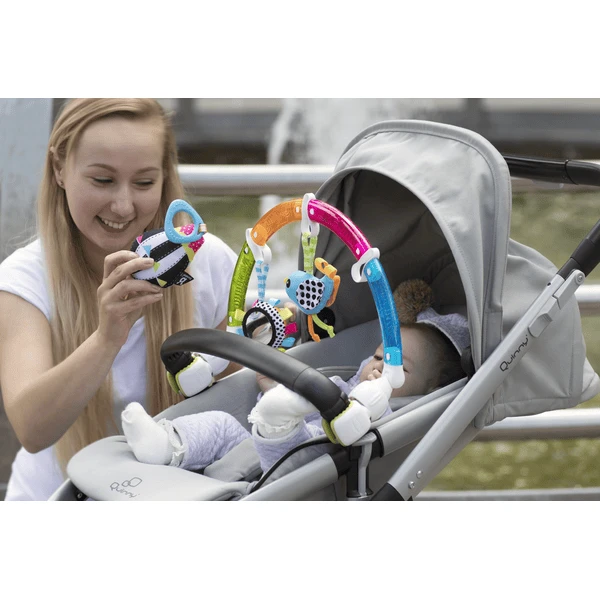 - Verstelbare clips voor universele bevestiging aan de meeste kinderdraagzakken, kinderwagens, wipstoeltjes, trampolines en meer