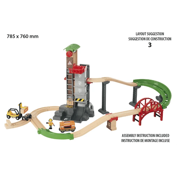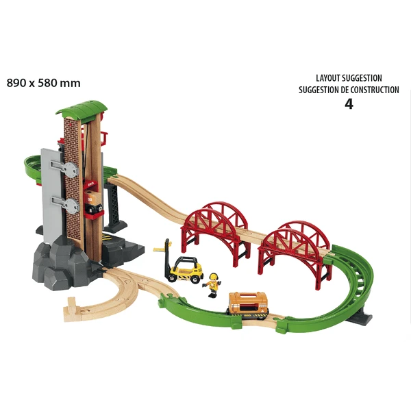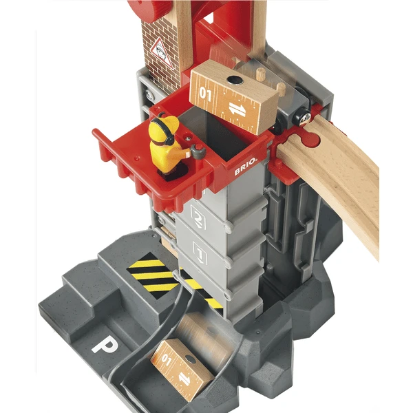 De grote magazijn-set met lift maakt dat precies mogelijk. Bouw de stapelbare brug, bochten en rails helemaal tot aan de top!
