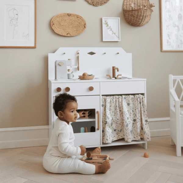 - Het gordijn is omkeerbaar met twee verschillende Print s, Pressed Leaves Rose aan de ene kant en Forest aan de andere, zodat de speelkeuken vrij kan worden ingericht naar de wensen van het gezin