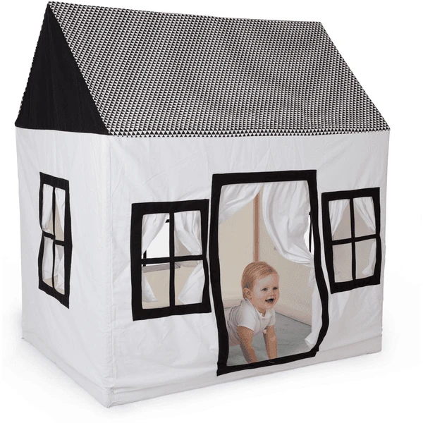 Het speelhuis is eenvoudig te monteren en het wit katoenen doek maakt het helemaal af met de deuropening en de raampjes waar je ook kan doorkijken. Het speelhuisje kan ook bij mooi weer buiten gebruikt worden.