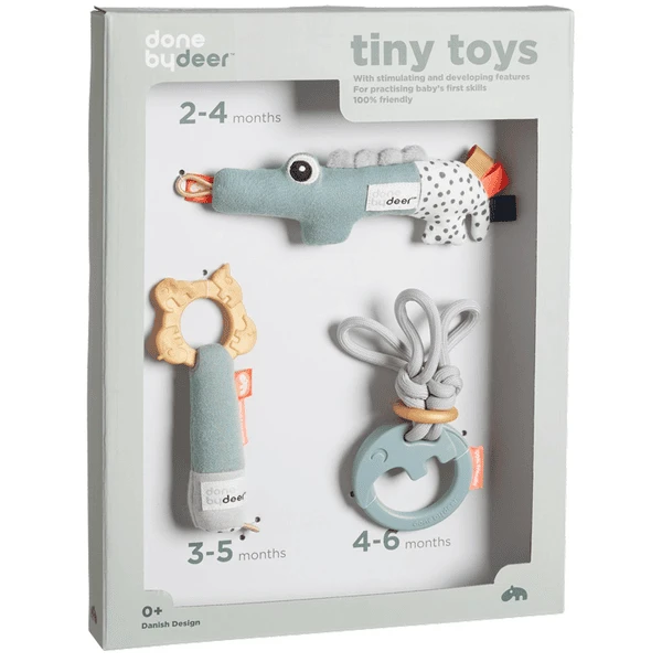 Baby’s beginnen hun fijne motoriek al heel vroeg te ontwikkelen. De drie kleine activiteitsspeeltjes in deze geschenkdoos zijn perfect om te oefenen. Het speelgoed is perfect voor baby’s vanaf 2 maanden, met speciale aandacht voor het stimuleren van ongecontroleerde bewegingen. De rammelaar, grijpring en bijtring stimuleren juist deze motoriek en zijn bovendien ontworpen om bijzonder licht, zacht en klein te zijn.