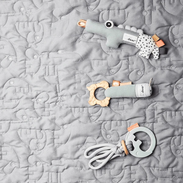 - Materiaal bijtring met rammelaar: 25 % katoen / 75 % polyester