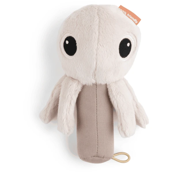 Als de kleine kwal wordt geschud, maakt hij een zacht ratelend geluid. De zachte jelly rammelaar is verkrijgbaar in zachtroze tinten.