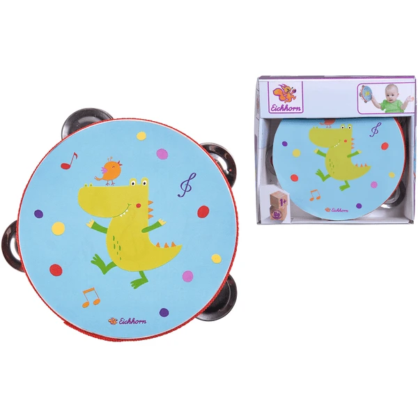 De kleurrijk vormgegeven tamboerijn van Eichhorn produceert harmonieuze geluiden en draagt bij aan de positieve ontwikkeling van de auditieve waarneming van uw kind. Geschikt voor kinderen ouder dan één jaar.
