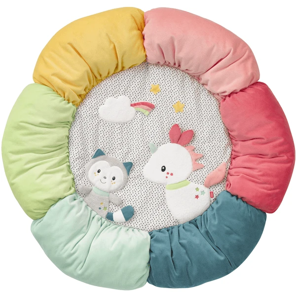 Het activity nestje Aiko & Yuki met een ligvlak van verschillende extra zachte materialen en oppervlakken nodigt de baby uit om te voelen, te knuffelen, te kruipen en te spelen. Dankzij de bijzonder zachte en gewatteerde rand heeft de baby een fijne ligpositie. De 5 hangende figuren aan de bogen verhogen de aandacht van de baby en zorgen voor plezier. Een verborgen piep in de eenhoorn, het gerinkel van de kat, het getjilp in de wolk en het ritselen in de ster zorgen voor akoestische prikkels en een eerste kennismaking met de omgeving. De speelfiguren zijn gemakkelijk te grijpen en verhogen op speelse wijze de motorische vaardigheden van de baby vanaf de geboorte.