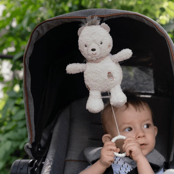 De schattige beer uit de Peruaanse collectie is niet alleen een trouwe metgezel, maar troost en kalmeert met zijn zachte melodie! Door het praktische formaat en de bevestigingsriemen kun je de pluche beer overal mee naartoe nemen. Voelen, knuffelen en liefhebben: Hij zal in een mum van tijd de beste vriend van de baby zijn!