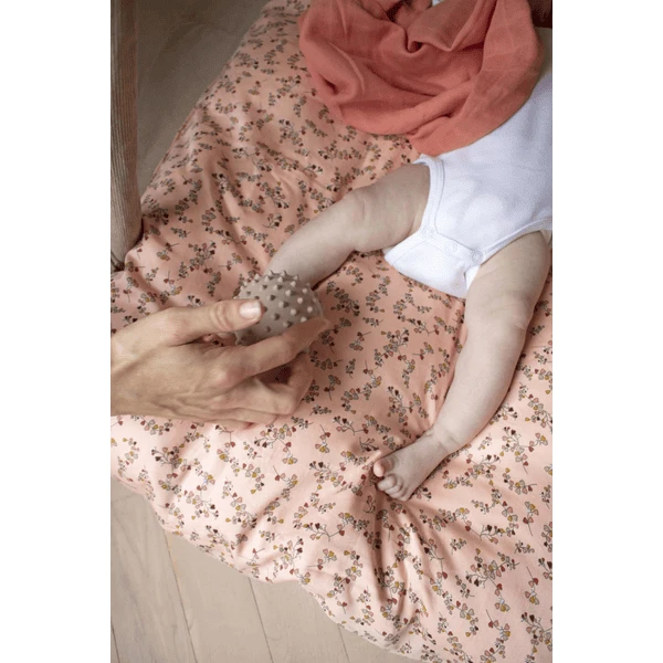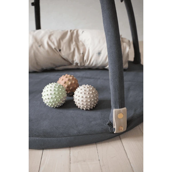 De Nor stimulatiebal is gemaakt van 100% natuurlijk rubber en helpt de motoriek en grijpreflexen van de allerkleinsten te stimuleren. Met een aangenaam belgeluid binnenin, stimuleert het ook het gehoor. Er zitten kleine zachte puntjes op het oppervlak – perfect voor een zachte massage van vermoeide spieren. De uiteinden zijn zacht en kunnen worden gebruikt om op geïrriteerd tandvlees te bijten. Tegelijkertijd wordt de tastzin aangemoedigd. Een geweldig product voor de ontwikkeling van de fijne motoriek.