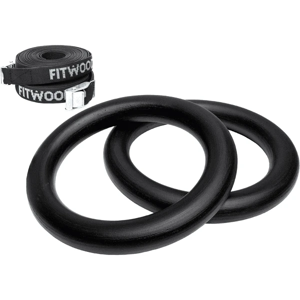 - De turnringen worden geleverd met duurzame FitWood banden waarmee de turnringen aan het plafond of bijvoorbeeld aan de TAIMI MINI wandstangen kunnen worden bevestigd.