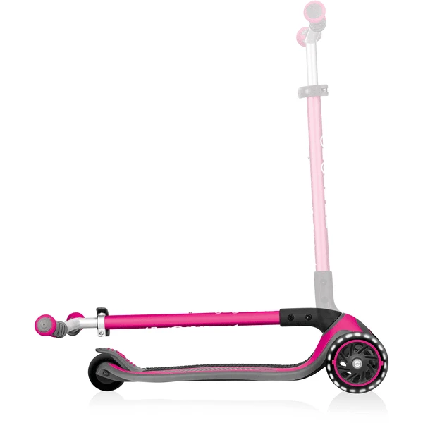 De Scoot is super uitgerust met gegoten PU wielen, hoge rebound, ABEC 5 kogellagers en stijlvolle voorwielen met batterijloze LED-lichtwielen (dynamotechnologie). Met deze oplichtende wielen ben jij de blikvanger met je stijlvolle scooter! Bovendien is de scooter uitgerust met een geoptimaliseerde en extra brede bi-injectie achterwiel frictierem met spaakbescherming. Het extra brede BMX Style stuur met 2-kleurige ergonomische TPR handvatten zorgen voor de coole visuele look!