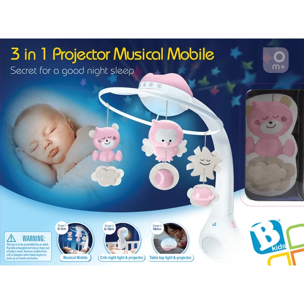 Niet zomaar een muziekmobiel – na 9 maanden, als alle andere mobiles op zolder belanden, kan deze omgebouwd worden en aan het kinderbed als lamp worden aangebracht. Later kan hij zelfs als projector-nachtlampje worden gebruikt. Zo gaat deze mobile erg lang mee.