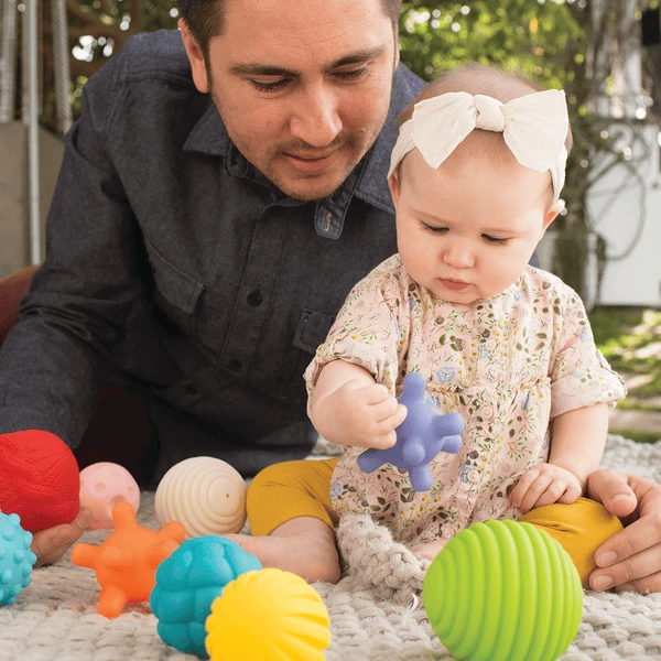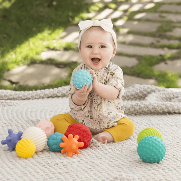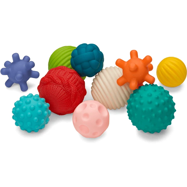 Deze speelballen stimuleren op een speelse manier de zintuigen van je baby. Door de verschillende kleuren en oppervlaktestructuren is de verveling nooit een probleem! De set bevat in totaal 10 sensorische ballen waar je baby mee kan spelen. Door hun handige formaat zijn ze gemakkelijk vast te houden in de handen van kleine kinderen. Ze helpen ook bij de pijn als de eerste tandjes doorkomen. De ballen zijn geschikt vanaf 6 tot 36 maanden.