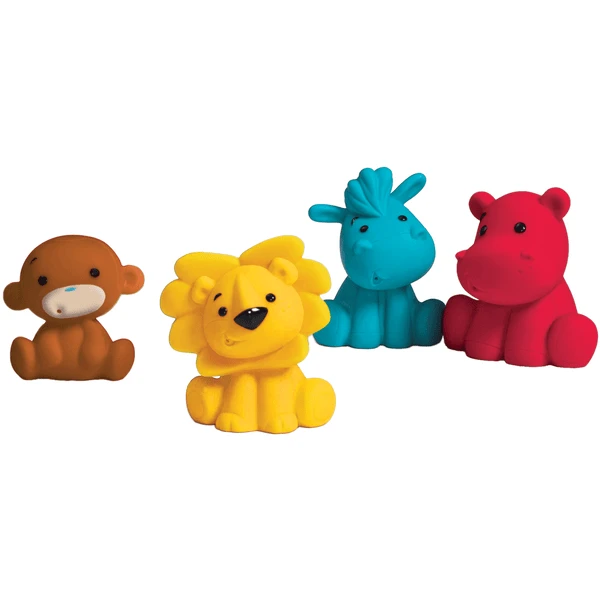 Met Speelballen, dobbelstenen en sproeidieren.Leeftijd: vanaf 6 maanden