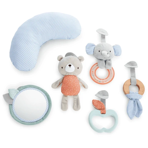De speelgoedhanger van natuurlijk hout en omkeerbare prints past mooi in uw interieur. De leuke Activity speeltjes en het buikkussen kunnen worden verwijderd om ze gemakkelijk op te bergen of om mee te spelen onderweg.