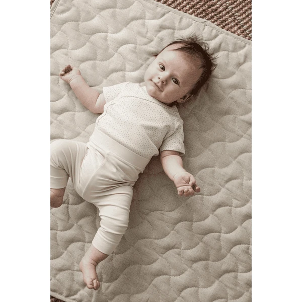 De gewatteerde speelmat met buitenhoes is gemaakt van een linnenmengsel. Gebruik dit samen met onze houten baby gym of als speelmat. De speelmat is perfect als je kind wakker en actief is. Het kan gemakkelijk worden opgeborgen in de baby tas als je onderweg bent.