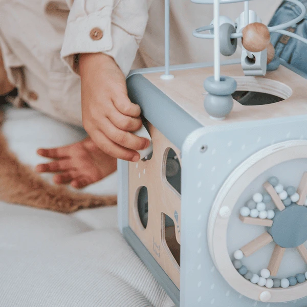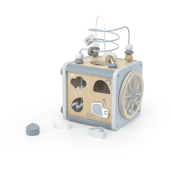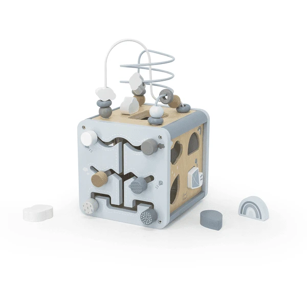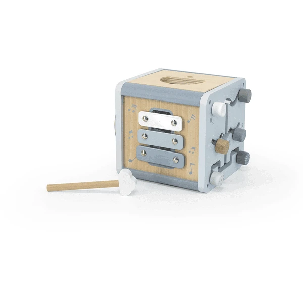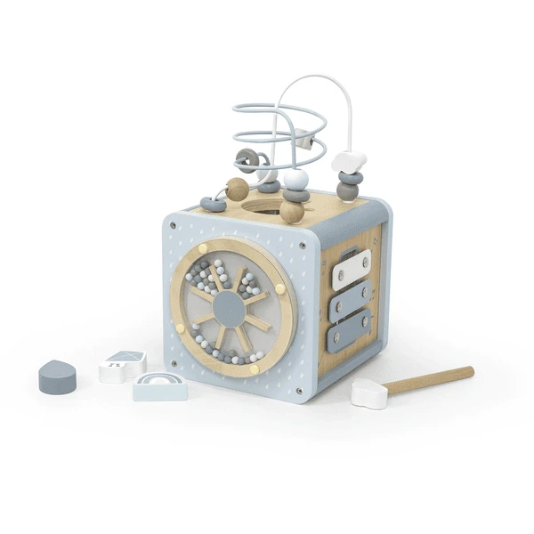 - De 5-in-1 activiteitenkubus bevat een vormensorteerder, tandwielen, een spoor-doolhof, een xylofoon en een doolhof van kralen om kinderen bezig te houden.
