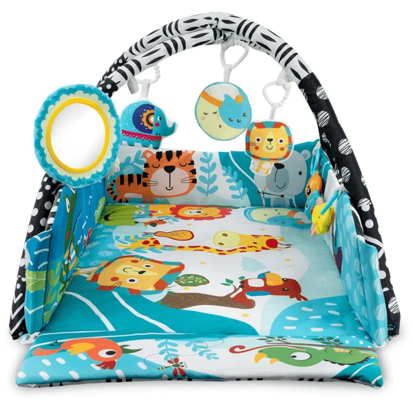 Door naar het speeltje te reiken, worden de spieren van uw baby getraind en versterkt hij ook zijn grijpvermogen en oefent hij zijn hoofdje in bepaalde houdingen te houden. Het versterkt ook de spieren van de armen en de rug, die door het speciale kussen speciaal worden getraind bij het liggen en dient als hulpmiddel bij het zelfstandig zitten.