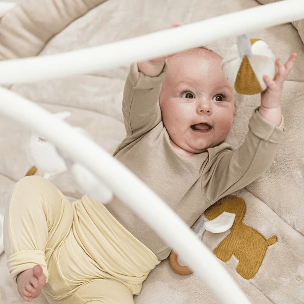 Voorzichtig: Verwijder het speelgoed zodra het kind probeert op handen en voeten te gaan staan of te kruipen, om elk risico op letsel door verstrikking te voorkomen.