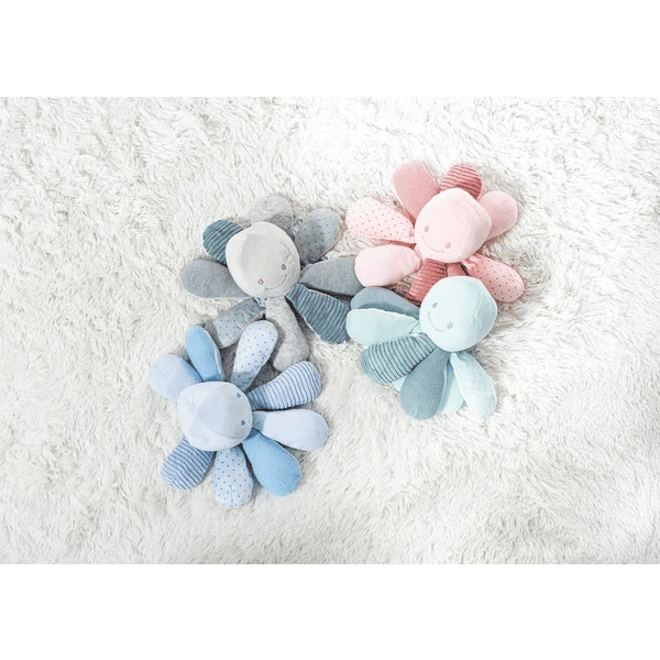 - Pluche octopus met verschillende zachte materialen en geluiden om de baby te stimuleren