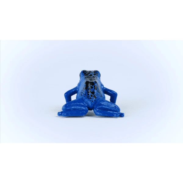 - De helderblauwe pijlgifkikker ziet er prachtig uit met zijn zwarte vlekken op de rug