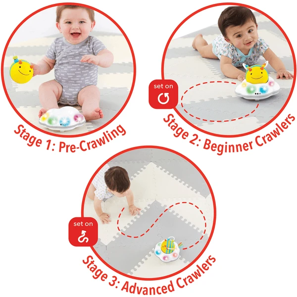 Onze interactieve bijen animeren tot kruipende avonturen. Als je op zoek bent naar een speeltje dat je baby aanmoedigt om te kruipen, zul je niet teleurgesteld zijn door de Follow-Bee Crawl Toy. Het speelgoed is ontworpen om drie stadia te doorlopen met je baby: het stimuleert en daagt je baby uit en geeft hem beweging met kleurrijke lichtjes, dynamische geluiden en zoete zoemende geluiden, zodat hij helemaal vanzelf na de lieve bij kruipt.