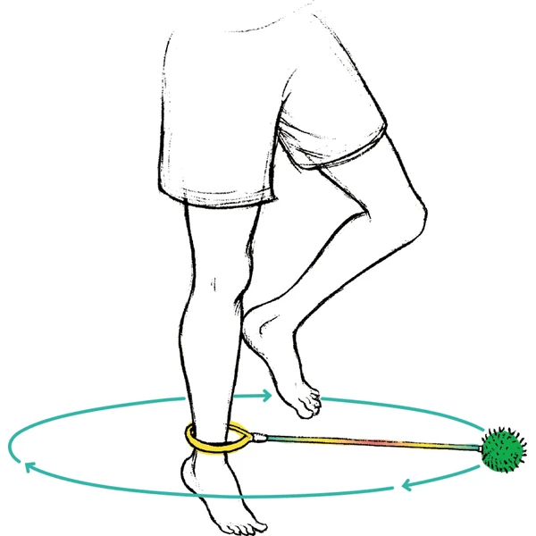 - De zachte bal is gemaakt om te draaien met één been, terwijl je het momentum behoudt en met het andere been over het lint springt.