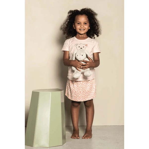 Maat: 28 cmKleur: grijsMateriaal: zacht plucheVulling met synthetisch vulmateriaalOgen: kunststofKnop: met roestvrij stalen knop in oorReiniging: wasbaar tot 30° C