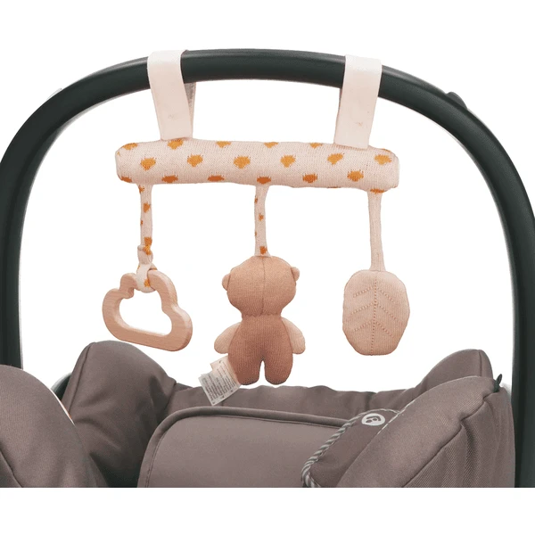 Chloorbleekmiddel niet mogelijk. Niet in de droogtrommel. Niet strijken.Om mogelijke verwondingen door het omwikkelen met het koord te voorkomen, moet dit speelgoed worden verwijderd zodra uw kind op handen en knieën in een kruiphouding gaat staan. Voor de veiligheid van uw kind moeten beide uiteinden van de kinderwagenketting altijd goed vastzitten.