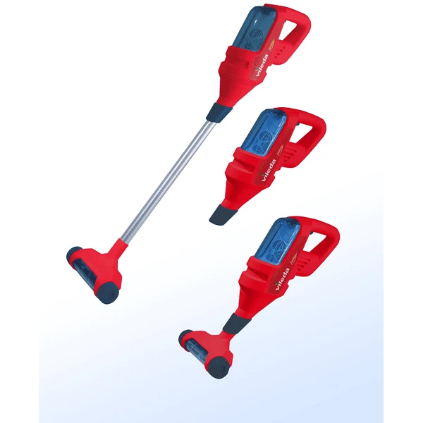 In het stofreservoir wervelen klein e parels en er zijn wieltjes aan de onderkant van het mondstuk. Er is ook een extra handsproeier.