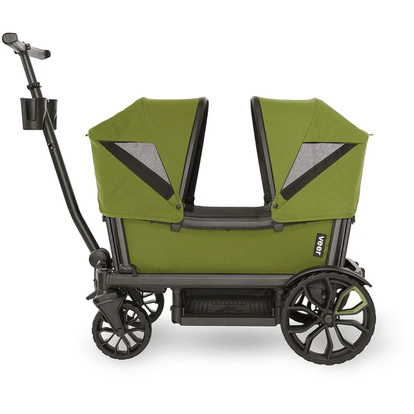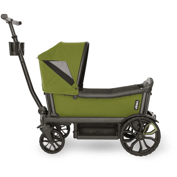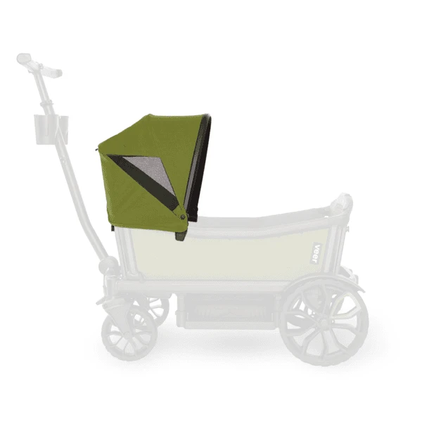 De Veer luifel wordt snel en intuïtief aan het frame van de Cruiser bevestigd en is eenvoudig op- en in te klappen. Tot twee zonnekappen kunnen per cruiser worden gemonteerd – één over elke zitplaats. Dankzij het kijkvenster kunt u uw kinderen zien en verborgen magneten zorgen ervoor dat het venster op zijn plaats blijft.