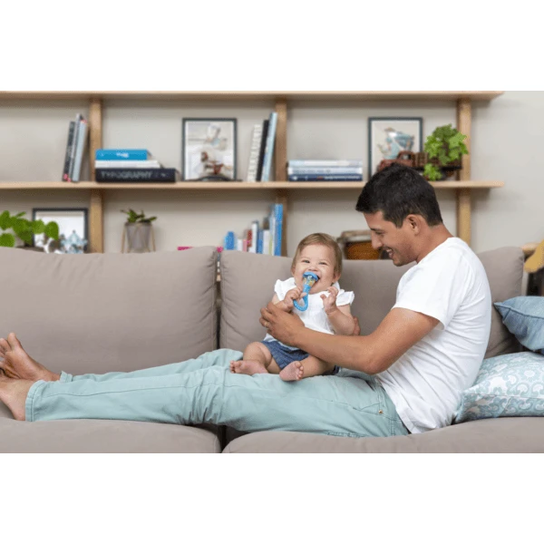 Deze speciale baby-maraca past perfect in elk klein babyhandje.
